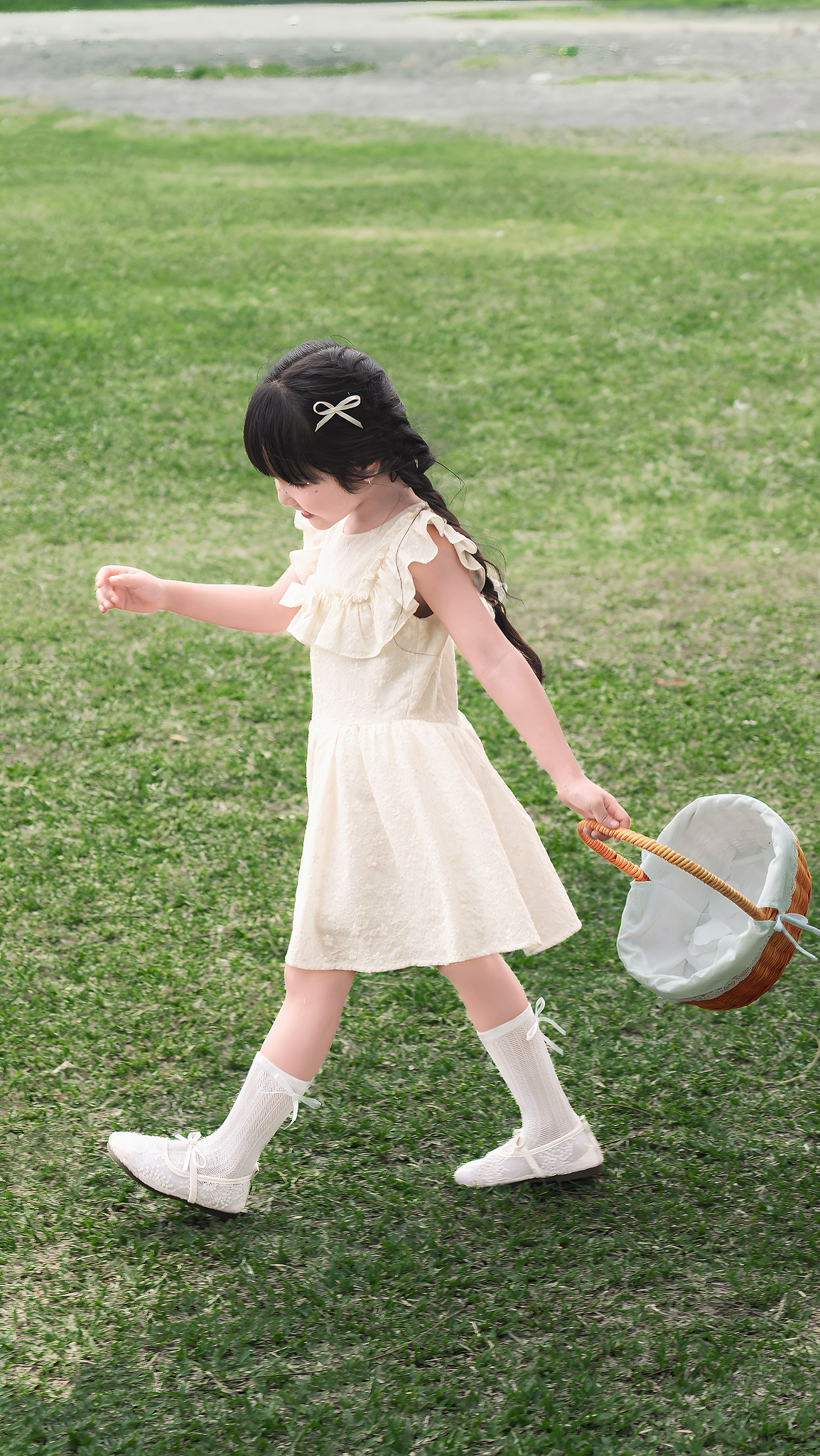 Đặc biệt, chiếc nơ trang trí nhỏ nhắn được đặt khéo léo ngay giữa ngực không chỉ là điểm nhấn thị giác mà còn là biểu tượng của sự nữ tính, ngọt ngào. Đối với DESA MAISON, một chiếc váy hè dạo phố bé gái 2026 cao cấp không cần quá phô trương; sự đẳng cấp nằm ở độ chuẩn xác của từng nếp gấp bèo nhún và sự cân đối của chiếc nơ nhỏ – những chi tiết mà hàng công nghiệp đại trà không bao giờ có thể sao chép hoàn hảo.