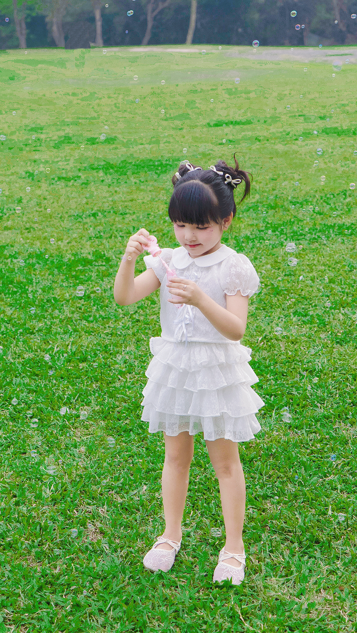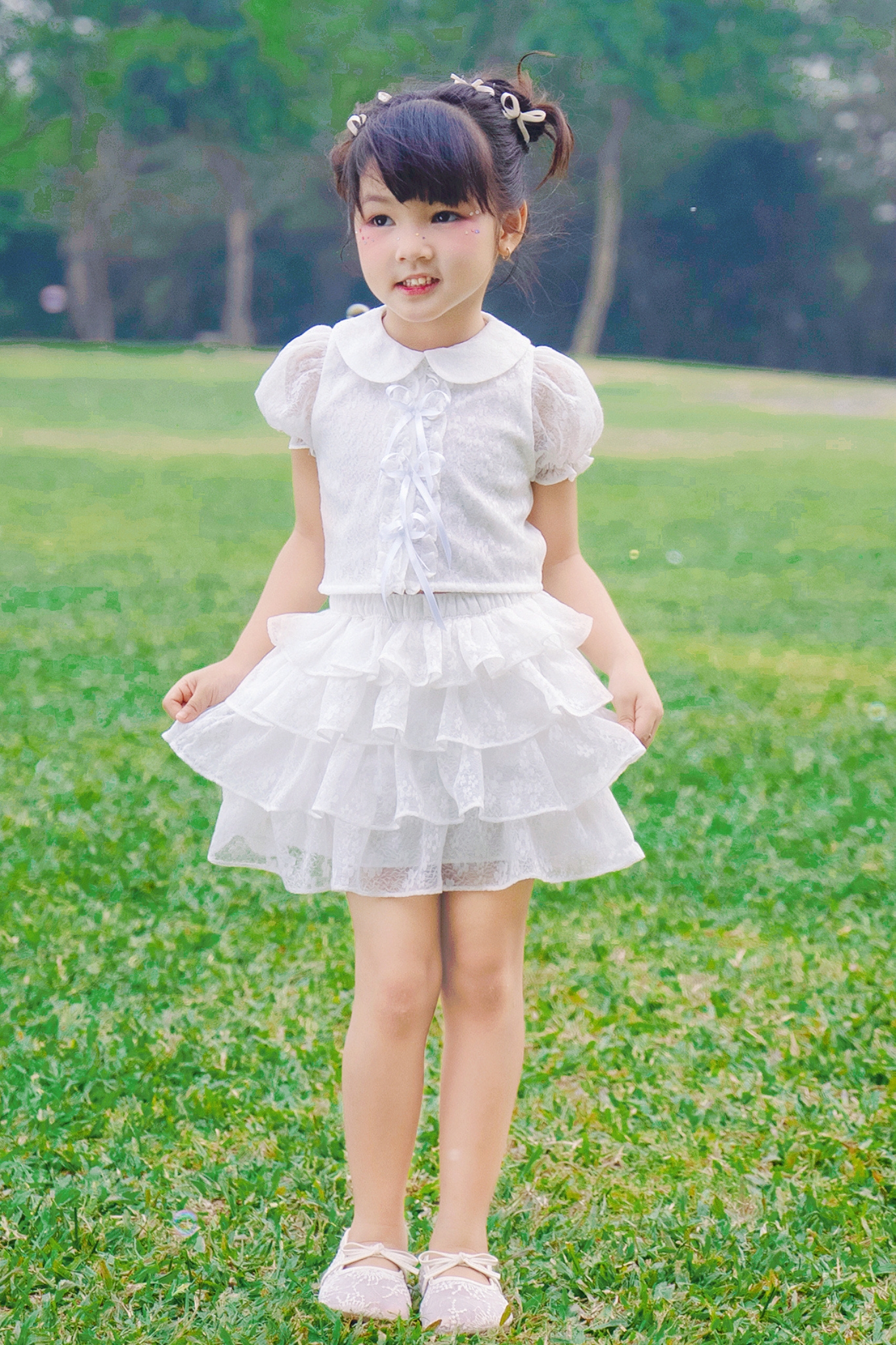 Nếu Sunny Set là sự rạng rỡ của nắng, thì Pure Set chính là hiện thân của sự trong trẻo, nhẹ nhàng như làn hơi sương buổi sớm. Trong bộ sưu tập váy hè dạo phố bé gái 2026, Pure Set không chỉ là một bộ trang phục, mà là một tác phẩm nghệ thuật tôn vinh nét đẹp kẹo ngọt nhưng vẫn đầy sang trọng của các “nàng thơ nhí”. Sự kết hợp giữa dáng áo Croptop hiện đại và chân váy tầng bồng bềnh tạo nên một diện mạo hoàn toàn mới, phá vỡ những quy chuẩn thông thường của thời trang trẻ em.